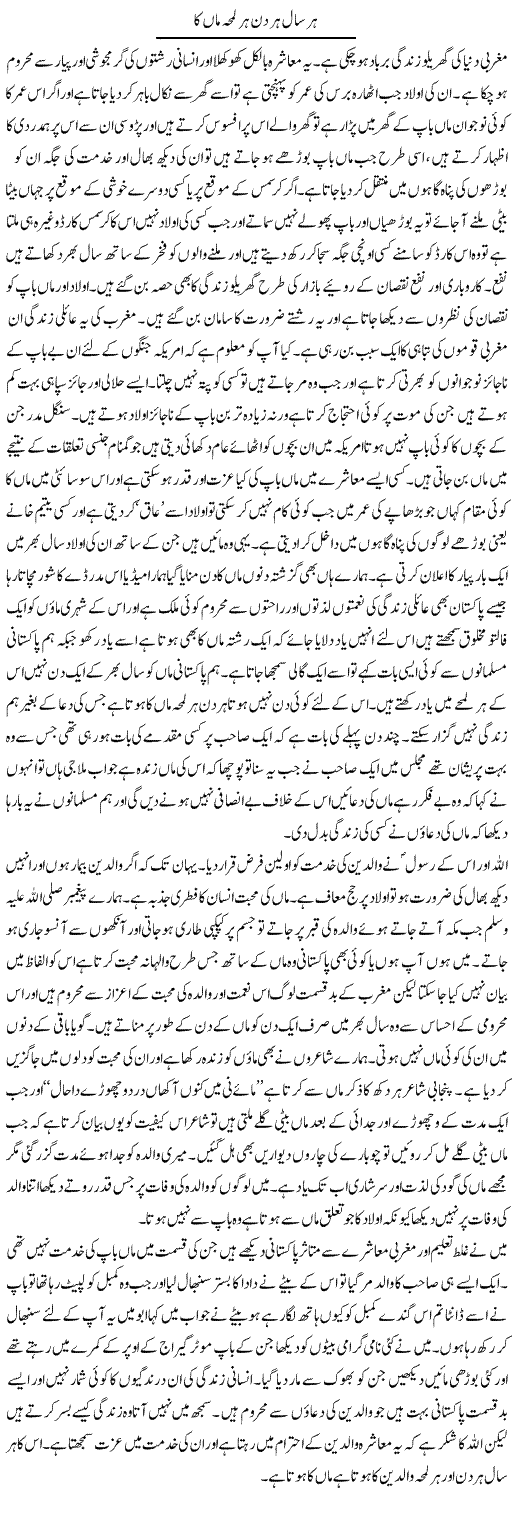 “Har Saal Har Din Har Lamha Maan Ka” a column by Abdul Qadir Hassan